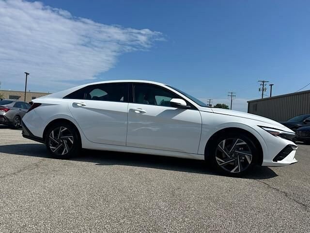Check out all these great options Option Group 01, 17" x 7.0J Alloy Wheels, 4-Wheel Disc Brakes, 8 Speakers, ABS brakes, Air Conditioning, Alloy wheels, AM/FM radio: SiriusXM, Apple CarPlay & Android Auto, Auto High-beam Headlights, Auto-dimming Rear-View mirror, Automatic temperature control, Brake assist, Bumpers: body-color, Cargo Net, Cargo Side Bins, Carpeted Floor Mats, Delay-off headlights, Driver door bin, Driver vanity mirror, Dual front impact airbags, Dual front side impact airbags, Electronic Stability Control, Emergency communication system: Bluelink+, Exterior Parking Camera Rear, First Aid Kit, Front anti-roll bar, Front Bucket Seats, Front Center Armrest, Front dual zone A/C, Front reading lights, Front wheel independent suspension, Fully automatic headlights, H-Tex Leatherette Seat Trim, Heated & Ventilated Front Bucket Seats, Heated door mirrors, Heated front seats, Illuminated entry, Leather Shift Knob, Leather steering wheel, Low tire pressure warning, Memory seat, Navigation System, Occupant sensing airbag, Outside temperature display, Overhead airbag, Overhead console, Panic alarm, Passenger door bin, Passenger vanity mirror, Power door mirrors, Power driver seat, Power moonroof, Power steering, Power windows, Radio: AM/FM/HD/SiriusXM Display Audio, Rear seat center armrest, Rear side impact airbag, Rear window defroster, Remote keyless entry, Reversible Cargo Tray, Roadside Assistance Kit, Security system, Speed control, Speed-sensing steering, Split folding rear seat, Steering wheel mounted audio controls, Tachometer, Telescoping steering wheel, Tilt steering wheel, Traction control, Trip computer, Turn signal indicator mirrors, Variably intermittent wipers, and Ventilated front seats. Serenity White 2025 Hyundai Elantra Hybrid Limited FWD 6-Speed Dual Clutch I4