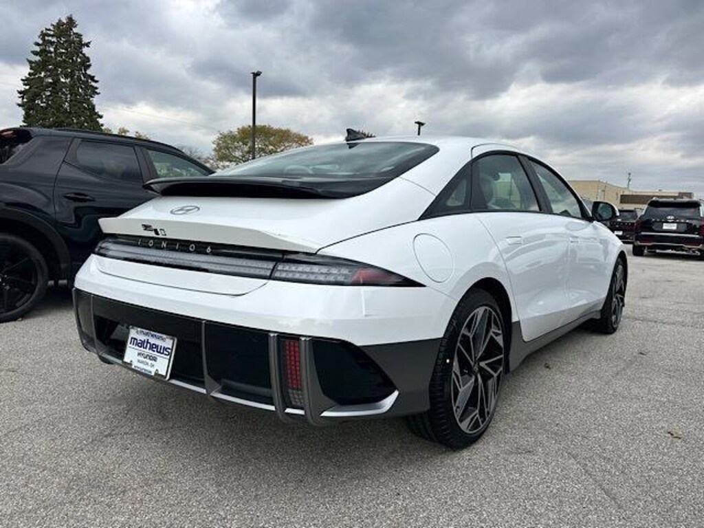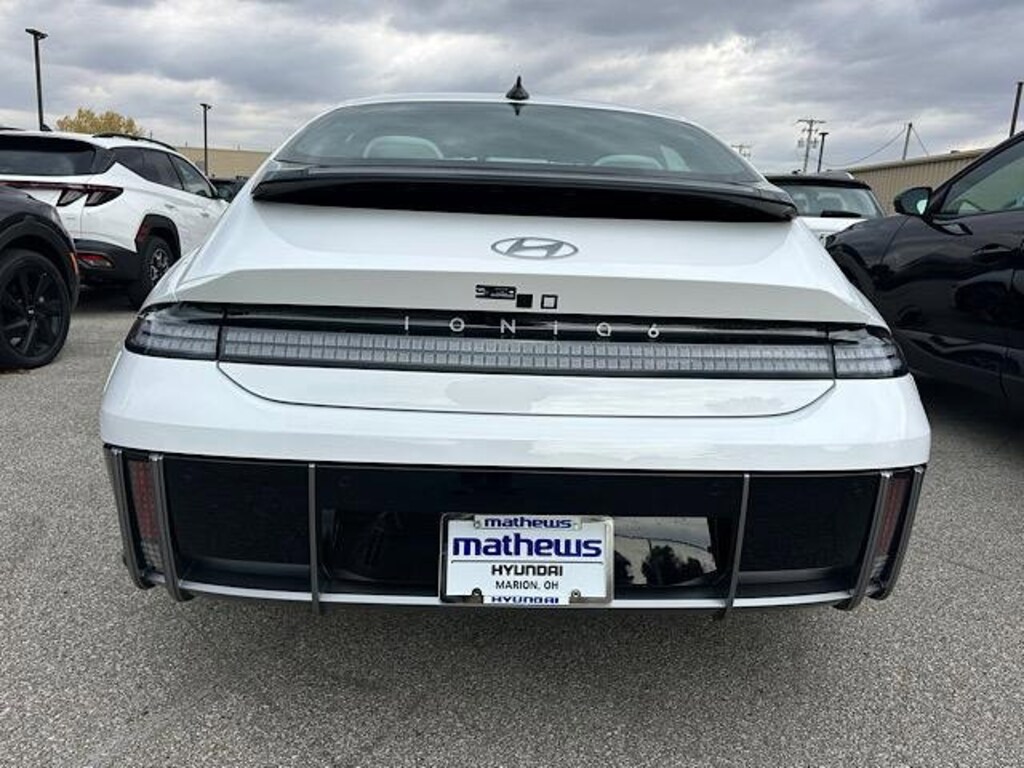Check out all these great options Option Group 01, 4-Wheel Disc Brakes, 6 Speakers, ABS brakes, Air Conditioning, Alloy Door Step Plates, Alloy wheels, AM/FM radio: SiriusXM, Apple CarPlay & Android Auto, Auto High-beam Headlights, Auto-dimming Rear-View mirror, Automatic temperature control, Brake assist, Bumpers: body-color, Carpeted Floor Mats, Delay-off headlights, Driver door bin, Driver vanity mirror, Dual front impact airbags, Dual front side impact airbags, Electronic Stability Control, Emergency communication system: Bluelink Connected Car Services (Bluelink+), Envelope Cargo Net, First Aid Kit, Four wheel independent suspension, Front anti-roll bar, Front Bucket Seats, Front Center Armrest, Front dual zone A/C, Front reading lights, Fully automatic headlights, Garage door transmitter: HomeLink, H-Tex Leatherette Seating Surfaces, harman/kardon® Speakers, Heated door mirrors, Heated Front Bucket Seats, Heated front seats, Illuminated entry, Leather steering wheel, Low tire pressure warning, Navigation System, Occupant sensing airbag, Outside temperature display, Overhead airbag, Overhead console, Panic alarm, Passenger door bin, Passenger vanity mirror, Power door mirrors, Power driver seat, Power steering, Power windows, Radio: AM/FM/SiriusXM/HD Radio Audio System, Rear anti-roll bar, Rear Bumper Applique, Rear reading lights, Rear Reversible Cargo Tray, Rear seat center armrest, Rear window defroster, Remote keyless entry, Security system, Speed control, Speed-sensing steering, Split folding rear seat, Spoiler, Steering wheel mounted audio controls, Telescoping steering wheel, Tilt steering wheel, Traction control, Trip computer, Turn signal indicator mirrors, Variably intermittent wipers, Vehicle to Load Adapter, and Wheels: 20 x 8.5J Alloy. Serenity White 2025 Hyundai IONIQ 6 SEL AWD 1-Speed Automatic Electric Motor