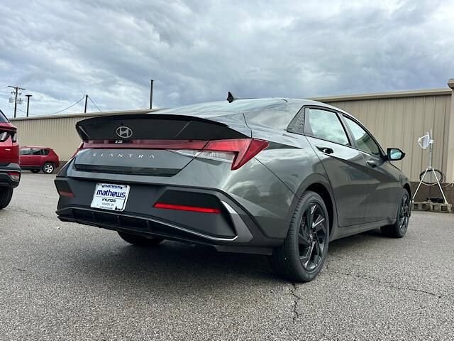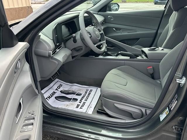 Check out all these great options Option Group 01, 4-Wheel Disc Brakes, 6 Speakers, ABS brakes, Air Conditioning, All-Season Fitted Liners, Alloy wheels, AM/FM radio, Apple CarPlay & Android Auto, Auto High-beam Headlights, Automatic temperature control, Brake assist, Bumpers: body-color, Cargo Net, Cargo Tray, Carpeted Floor Mats, Delay-off headlights, Driver door bin, Driver vanity mirror, Dual front impact airbags, Dual front side impact airbags, Electronic Stability Control, Exterior Parking Camera Rear, First Aid Kit, Front anti-roll bar, Front Bucket Seats, Front Center Armrest, Front dual zone A/C, Front reading lights, Front wheel independent suspension, Fully automatic headlights, Illuminated entry, Low tire pressure warning, Occupant sensing airbag, Outside temperature display, Overhead airbag, Overhead console, Panic alarm, Passenger door bin, Passenger vanity mirror, Power door mirrors, Power steering, Power windows, Premium Cloth Seat Trim, Radio: AM/FM/HD Display Audio, Rear side impact airbag, Rear window defroster, Remote keyless entry, Security system, Speed control, Speed-sensing steering, Spoiler, Steering wheel mounted audio controls, Tachometer, Telescoping steering wheel, Tilt steering wheel, Traction control, Trip computer, Variably intermittent wipers, and Wheels: 17" x 7.0J Alloy Gloss Black w/Dark Finish. Amazon Gray 2026 Hyundai Elantra SEL Sport FWD CVT I4