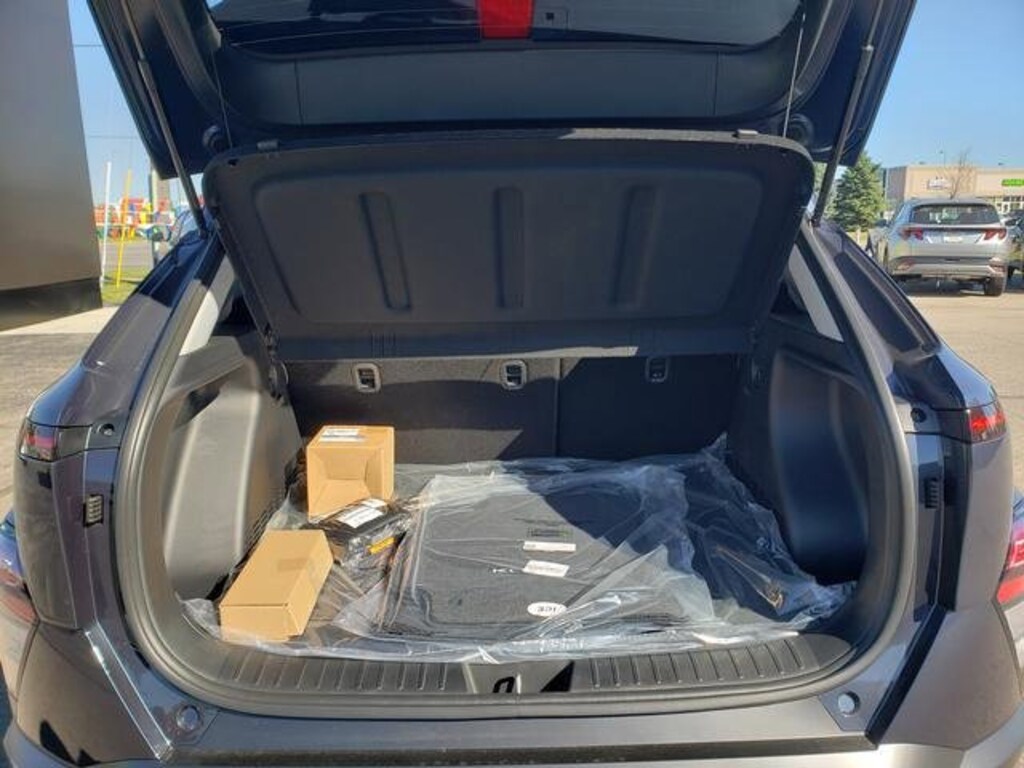 Check out all these great options Option Group 01, 4-Wheel Disc Brakes, 6 Speakers, ABS brakes, Air Conditioning, Alloy wheels, AM/FM radio: SiriusXM, Apple CarPlay & Android Auto, Auto High-beam Headlights, Automatic temperature control, Brake assist, Bumpers: body-color, Cargo Net, Cargo Tray, Carpeted Floor Mats, Delay-off headlights, Driver door bin, Driver vanity mirror, Dual front impact airbags, Dual front side impact airbags, Electronic Stability Control, Emergency communication system: Bluelink+, Exterior Parking Camera Rear, First Aid Kit, Four wheel independent suspension, Front anti-roll bar, Front Bucket Seats, Front Center Armrest, Front dual zone A/C, Front reading lights, Fully automatic headlights, H-Tex Seat Trim, Heated door mirrors, Heated Front Bucket Seats, Heated front seats, Illuminated entry, Leather steering wheel, Lifestyle Hitch, Low tire pressure warning, Occupant sensing airbag, Outside temperature display, Overhead airbag, Panic alarm, Passenger door bin, Passenger vanity mirror, Power door mirrors, Power driver seat, Power steering, Power windows, Radio: AM/FM/SiriusXM/HD Radio Audio System, Rear anti-roll bar, Rear seat center armrest, Rear window defroster, Rear window wiper, Remote keyless entry, Security system, Speed control, Speed-sensing steering, Split folding rear seat, Spoiler, Steering wheel mounted audio controls, Tachometer, Telescoping steering wheel, Tilt steering wheel, Traction control, Trip computer, Turn signal indicator mirrors, Variably intermittent wipers, and Wheels: 19" x 7.5J Black/Silver Alloy. Denim Blue Pearl 2026 Hyundai Kona SEL AWD 8-Speed Automatic I4