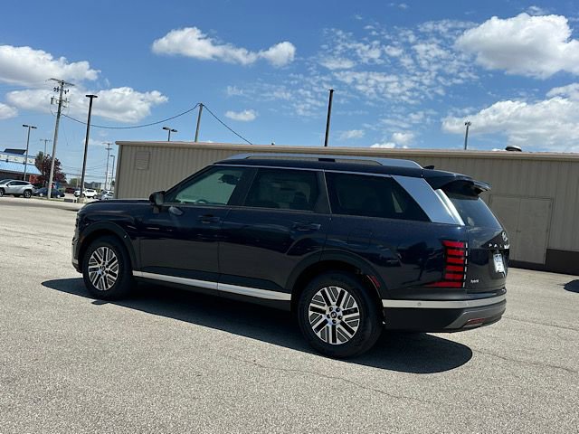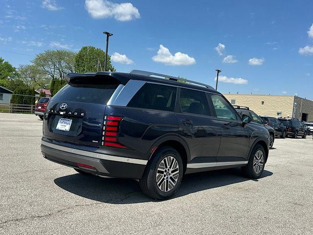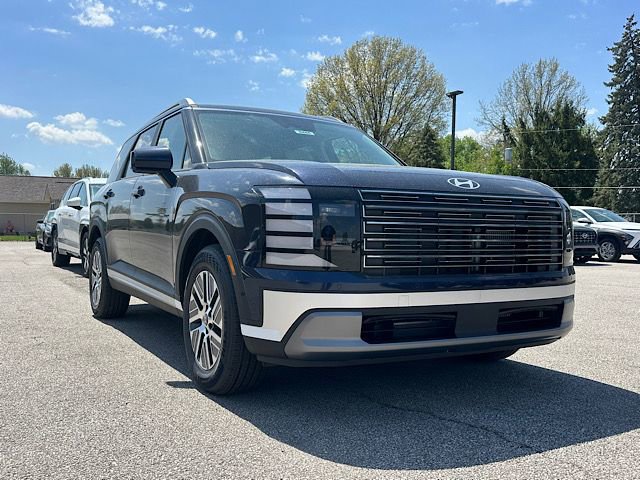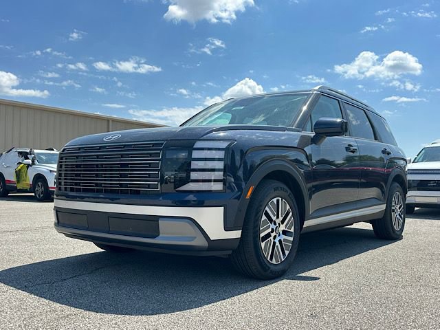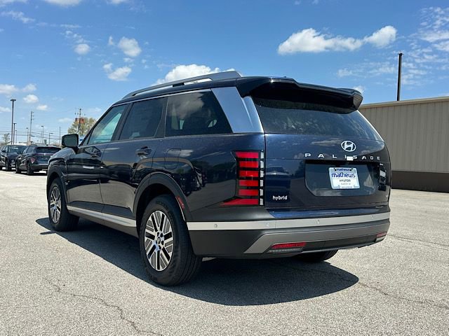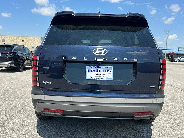 Check out all these great options Option Group 01, 100W Charging Cable, 3rd row seats: split-bench, 4-Wheel Disc Brakes, 8 Speakers, ABS brakes, Air Conditioning, Alloy wheels, AM/FM radio: SiriusXM, Apple CarPlay & Android Auto, Auto High-beam Headlights, Auto-dimming Rear-View mirror, Auto-leveling suspension, Automatic temperature control, Brake assist, Bumpers: body-color, Cargo Cover, Cargo Mat, Up Seatback, Cargo Net, Carpeted Floor Mats, Compass, Delay-off headlights, Driver door bin, Driver vanity mirror, Dual front impact airbags, Dual front side impact airbags, Electronic Stability Control, Emergency communication system: None, Exterior Parking Camera Rear, First Aid Kit, Four wheel independent suspension, Front anti-roll bar, Front Bucket Seats, Front Center Armrest, Front dual zone A/C, Front reading lights, Fully automatic headlights, H-Tex Leatherette Seat Trim, Heated door mirrors, Heated front seats, Illuminated entry, Knee airbag, Leather steering wheel, Low tire pressure warning, Navigation System, Occupant sensing airbag, Outside temperature display, Overhead airbag, Overhead console, Panic alarm, Passenger door bin, Passenger vanity mirror, Power door mirrors, Power driver seat, Power Liftgate, Power steering, Power windows, Radio data system, Radio: Infotainment Navigation System, Rear air conditioning, Rear anti-roll bar, Rear audio controls, Rear Bumper Applique, Rear reading lights, Rear side impact airbag, Rear window defroster, Rear window wiper, Reclining 3rd row seat, Remote keyless entry, Security system, Speed control, Split folding rear seat, Spoiler, Steering wheel mounted audio controls, Tachometer, Telescoping steering wheel, Tilt steering wheel, Traction control, Trip computer, Turn signal indicator mirrors, Variably intermittent wipers, and Wheels: 18" x 8.0J Alloy. Classy Blue Pearl 2026 Hyundai Palisade Hybrid SEL Premium 7 Passenger AWD 6-Speed Automatic 2.5L Turbocharged GDI 4-Cylinder Hybrid