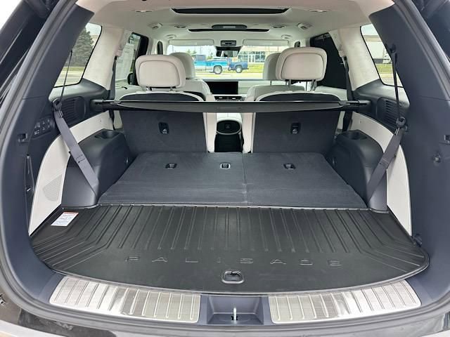 Check out all these great options Option Group 01, 14 Speakers, 3rd row seats: split-bench, 4-Wheel Disc Brakes, ABS brakes, Air Conditioning, Alloy wheels, AM/FM radio: SiriusXM, Apple CarPlay & Android Auto, Audio memory, Auto High-beam Headlights, Auto-dimming door mirrors, Auto-dimming Rear-View mirror, Auto-leveling suspension, Automatic temperature control, Brake assist, Bumpers: body-color, Cargo Cover, Cargo Tray, Carpeted Floor Mats, Compass, Delay-off headlights, Driver door bin, Driver vanity mirror, Dual front impact airbags, Dual front side impact airbags, Electronic Stability Control, Exterior Parking Camera Rear, First Aid Kit, Four wheel independent suspension, Front anti-roll bar, Front Bucket Seats, Front Center Armrest, Front dual zone A/C, Front reading lights, Fully automatic headlights, Garage door transmitter: HomeLink, Genuine wood console insert, Genuine wood dashboard insert, Heads-Up Display, Heated door mirrors, Heated front seats, Heated rear seats, Heated steering wheel, HVAC memory, Illuminated entry, Knee airbag, Leather steering wheel, Low tire pressure warning, Memory seat, Navigation System, Occupant sensing airbag, Outside temperature display, Overhead airbag, Overhead console, Panic alarm, Passenger door bin, Passenger vanity mirror, Power door mirrors, Power driver seat, Power Liftgate, Power moonroof, Power passenger seat, Power steering, Power windows, Premium Nappa Leather Seat Trim, Radio data system, Radio: Infotainment Navigation System, Rain sensing wipers, Rear air conditioning, Rear anti-roll bar, Rear audio controls, Rear reading lights, Rear side impact airbag, Rear window defroster, Rear window wiper, Reclining 3rd row seat, Remote keyless entry, Security system, Speed control, Split folding rear seat, Spoiler, Steering wheel mounted audio controls, Tachometer, Telescoping steering wheel, Tilt steering wheel, Traction control, Trip computer, Turn signal indicator mirrors, Variably intermittent wipers, Ventilated front seats, Ventilated rear seats, and Wheels: 21" x 8.5J Alloy. Abyss Black Pearl 2026 Hyundai Palisade Calligraphy AWD 8-Speed Automatic V6