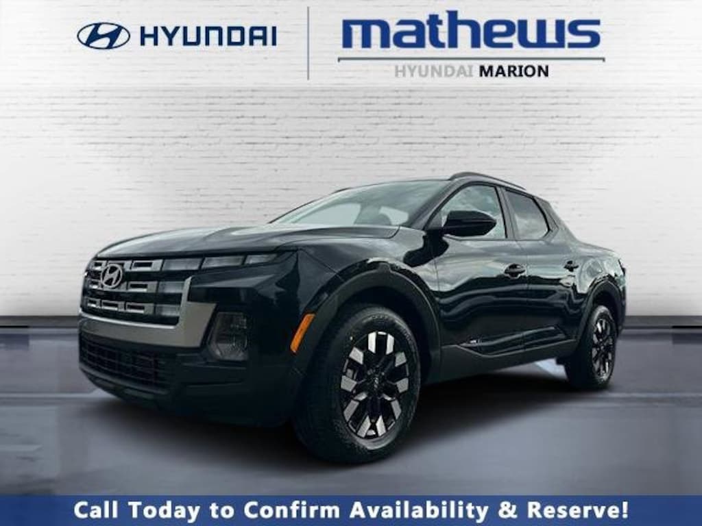 Check out all these great options Option Group 01, 18" x 7.5J Alloy Wheels, 4-Wheel Disc Brakes, 4.081 Axle Ratio, 6 Speakers, ABS brakes, Air Conditioning, All Season Fitted Liners, Alloy wheels, AM/FM radio: SiriusXM, Apple CarPlay & Android Auto, Auto High-beam Headlights, Auto-leveling suspension, Automatic temperature control, Bed Fence, Brake assist, Bumpers: body-color, Carpeted Floor Mats, Compass, Delay-off headlights, Driver door bin, Driver vanity mirror, Dual front impact airbags, Dual front side impact airbags, Electronic Stability Control, Emergency communication system: Bluelink+, Exterior Parking Camera Rear, First Aid Kit, Four wheel independent suspension, Front anti-roll bar, Front Bucket Seats, Front Center Armrest, Front dual zone A/C, Front reading lights, Fully automatic headlights, H-Tex Leatherette Seat Trim, Heated door mirrors, Heated Front Bucket Seats, Heated front seats, Illuminated entry, Low tire pressure warning, Occupant sensing airbag, Outside temperature display, Overhead airbag, Overhead console, Panic alarm, Passenger door bin, Passenger vanity mirror, Power door mirrors, Power driver seat, Power steering, Power windows, Radio data system, Radio: AM/FM/HD Audio System, Rear anti-roll bar, Rear reading lights, Rear side impact airbag, Rear step bumper, Rear window defroster, Remote keyless entry, Roadside Assistance Kit, Security system, Speed control, Speed-sensing steering, Split folding rear seat, Spoiler, Steering wheel mounted audio controls, Tachometer, Tailgate Protector, Telescoping steering wheel, Tilt steering wheel, Traction control, Trip computer, Turn signal indicator mirrors, and Variably intermittent wipers. Phantom Black 2026 Hyundai Santa Cruz SEL AWD 8-Speed Automatic with SHIFTRONIC 2.5L I4