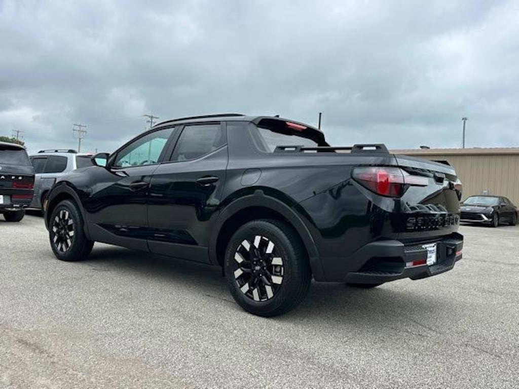 Check out all these great options Option Group 01, 18" x 7.5J Alloy Wheels, 4-Wheel Disc Brakes, 4.081 Axle Ratio, 6 Speakers, ABS brakes, Air Conditioning, Alloy wheels, AM/FM radio: SiriusXM, Apple CarPlay & Android Auto, Auto High-beam Headlights, Auto-leveling suspension, Automatic temperature control, Bed Cargo Net, Bed Rails, Brake assist, Bumpers: body-color, Cargo Net, Carpeted Floor Mats, Compass, Delay-off headlights, Driver door bin, Driver vanity mirror, Dual front impact airbags, Dual front side impact airbags, Electronic Stability Control, Emblem Kit, Emergency communication system: Bluelink+, Exterior Parking Camera Rear, First Aid Kit, Four wheel independent suspension, Front anti-roll bar, Front Bucket Seats, Front Center Armrest, Front dual zone A/C, Front reading lights, Fully automatic headlights, H-Tex Leatherette Seat Trim, Heated door mirrors, Heated Front Bucket Seats, Heated front seats, Illuminated entry, Low tire pressure warning, Occupant sensing airbag, Outside temperature display, Overhead airbag, Overhead console, Panic alarm, Passenger door bin, Passenger vanity mirror, Power door mirrors, Power driver seat, Power steering, Power windows, Radio data system, Radio: AM/FM/HD Audio System, Rear anti-roll bar, Rear reading lights, Rear side impact airbag, Rear step bumper, Rear window defroster, Remote keyless entry, Security system, Speed control, Speed-sensing steering, Split folding rear seat, Spoiler, Steering wheel mounted audio controls, Tachometer, Telescoping steering wheel, Tilt steering wheel, Traction control, Trip computer, Turn signal indicator mirrors, and Variably intermittent wipers. Phantom Black 2026 Hyundai Santa Cruz SEL AWD 8-Speed Automatic with SHIFTRONIC 2.5L I4