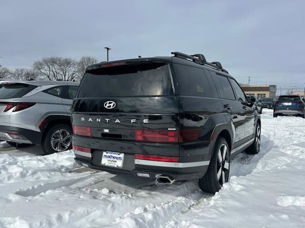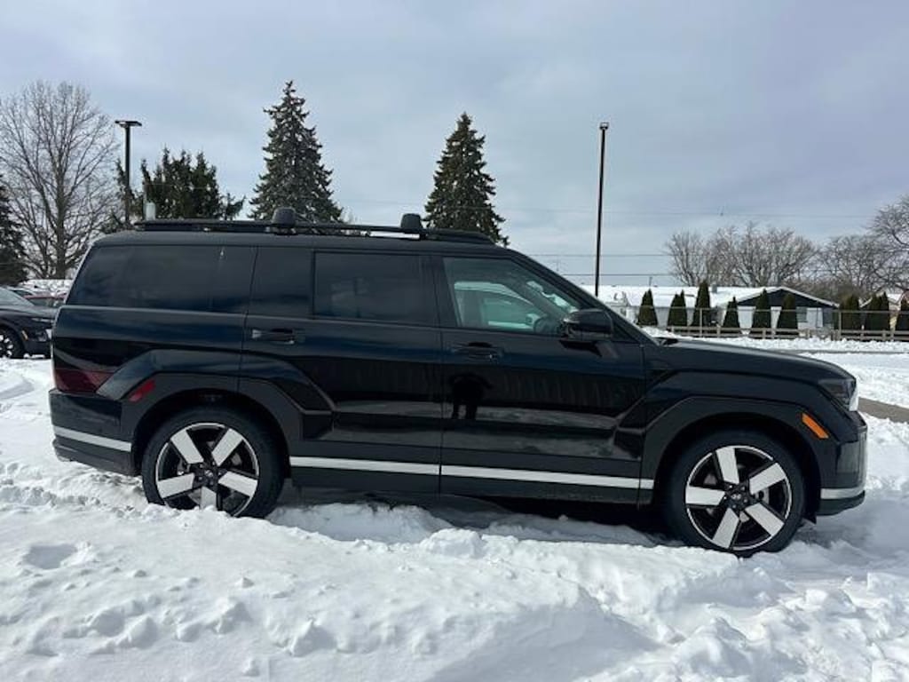 Check out all these great options 12 Speakers, 3rd row seats: bench, 4-Wheel Disc Brakes, ABS brakes, Air Conditioning, Alloy wheels, AM/FM radio: SiriusXM, Apple CarPlay & Android Auto, Auto High-beam Headlights, Auto-dimming Rear-View mirror, Automatic temperature control, Brake assist, Bumpers: body-color, Cargo Net, Cargo Tray, Carpeted Floor Mats, Delay-off headlights, Driver door bin, Driver vanity mirror, Dual front impact airbags, Dual front side impact airbags, Electronic Stability Control, Emergency communication system, Exterior Parking Camera Rear, First Aid Kit, Four wheel independent suspension, Front anti-roll bar, Front Bucket Seats, Front Center Armrest, Front dual zone A/C, Front reading lights, Fully automatic headlights, Garage door transmitter: HomeLink, Heated and Ventilated Front Bucket Seats, Heated door mirrors, Heated front seats, Heated rear seats, Heated steering wheel, Illuminated entry, Knee airbag, Leather Seat Trim, Leather steering wheel, Low tire pressure warning, Memory seat, Navigation System, Occupant sensing airbag, Outside temperature display, Overhead airbag, Overhead console, Panic alarm, Passenger door bin, Passenger vanity mirror, Power door mirrors, Power driver seat, Power Liftgate, Power moonroof, Power passenger seat, Power steering, Power windows, Radio: AM/FM/HD Bose Premium Audio System, Rain sensing wipers, Rear anti-roll bar, Rear side impact airbag, Rear window defroster, Rear window wiper, Remote keyless entry, Roadside Assistance Kit, Roof Rack Crossbars, Security system, Speed control, Speed-sensing steering, Split folding rear seat, Spoiler, Steering wheel mounted audio controls, Tachometer, Telescoping steering wheel, Tilt steering wheel, Traction control, Transverse Panel, Trip computer, Turn signal indicator mirrors, Variably intermittent wipers, Ventilated front seats, and Wheels: 20" x 8.5J Alloy. Phantom Black 2026 Hyundai Santa Fe Limited AWD 8-Speed Automatic with SHIFTRONIC 2.5L I4