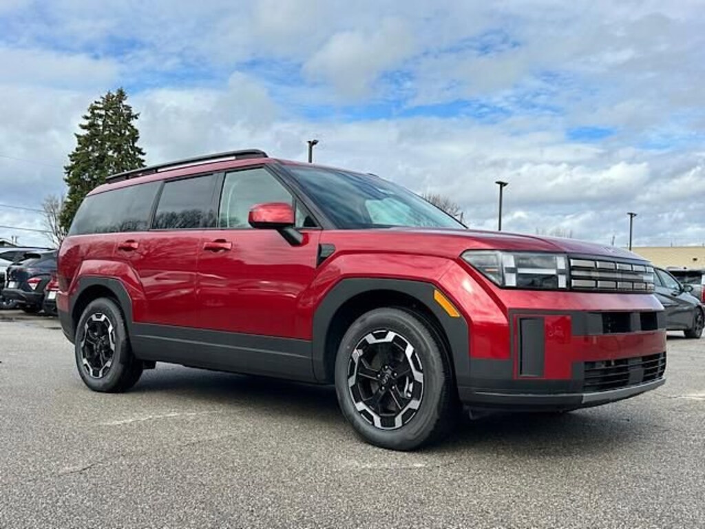 Check out all these great options Option Group 01, 18" x 7.5J Alloy Wheels, 3rd row seats: bench, 4-Wheel Disc Brakes, 6 Speakers, ABS brakes, Air Conditioning, Alloy wheels, AM/FM radio: SiriusXM, Apple CarPlay & Android Auto, Auto High-beam Headlights, Automatic temperature control, Brake assist, Bumpers: body-color, Cargo Cover/Screen, Cargo Net, Cargo Tray, Carpeted Floor Mats, Delay-off headlights, Driver door bin, Driver vanity mirror, Dual front impact airbags, Dual front side impact airbags, Electronic Stability Control, Emergency communication system, Exterior Parking Camera Rear, First Aid Kit, Four wheel independent suspension, Front anti-roll bar, Front Bucket Seats, Front Center Armrest, Front dual zone A/C, Front reading lights, Fully automatic headlights, H-Tex Leatherette Seat Trim, Heated door mirrors, Heated Front Bucket Seats, Heated front seats, Illuminated entry, Knee airbag, Leather steering wheel, Low tire pressure warning, Occupant sensing airbag, Outside temperature display, Overhead airbag, Overhead console, Panic alarm, Passenger door bin, Passenger vanity mirror, Power door mirrors, Power driver seat, Power Liftgate, Power steering, Power windows, Radio: AM/FM/HD Display Audio, Rear anti-roll bar, Rear seat center armrest, Rear side impact airbag, Rear window defroster, Rear window wiper, Remote keyless entry, Roadside Assistance Kit, Security system, Speed control, Speed-sensing steering, Split folding rear seat, Spoiler, Steering wheel mounted audio controls, Tachometer, Telescoping steering wheel, Tilt steering wheel, Traction control, Trip computer, Turn signal indicator mirrors, and Variably intermittent wipers. Ultimate Red 2026 Hyundai Santa Fe SEL FWD 8-Speed Automatic with SHIFTRONIC 2.5L I4