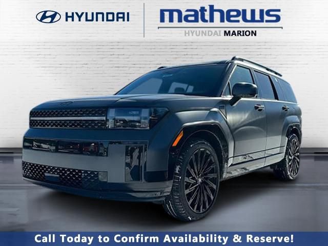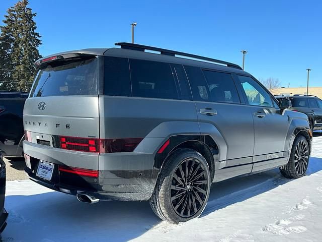 Check out all these great options Option Group 01, 12 Speakers, 3rd row seats: bench, 4-Wheel Disc Brakes, ABS brakes, Air Conditioning, All Season Fitted Liners, Alloy wheels, AM/FM radio: SiriusXM, Apple CarPlay & Android Auto, Auto High-beam Headlights, Auto-dimming Rear-View mirror, Automatic temperature control, Brake assist, Bumpers: body-color, Cargo Net, Cargo Organizer, Carpeted Floor Mats, Delay-off headlights, Driver door bin, Driver vanity mirror, Dual front impact airbags, Dual front side impact airbags, Electronic Stability Control, Emergency communication system, Exterior Parking Camera Rear, First Aid Kit, Four wheel independent suspension, Front anti-roll bar, Front Bucket Seats, Front Center Armrest, Front dual zone A/C, Front reading lights, Fully automatic headlights, Garage door transmitter: HomeLink, Heads-Up Display, Heated and Ventilated Front Bucket Seats, Heated door mirrors, Heated front seats, Heated rear seats, Heated steering wheel, Illuminated entry, Knee airbag, Leather steering wheel, Low tire pressure warning, Memory seat, Navigation System, Occupant sensing airbag, Outside temperature display, Overhead airbag, Overhead console, Panic alarm, Passenger door bin, Passenger vanity mirror, Power door mirrors, Power driver seat, Power Liftgate, Power moonroof, Power passenger seat, Power steering, Power windows, Quilted Premium Nappa Leather Seat Trim, Radio: AM/FM/HD Bose Premium Audio System, Rain sensing wipers, Rear anti-roll bar, Rear side impact airbag, Rear window defroster, Rear window wiper, Remote keyless entry, Roadside Assistance Kit, Security system, Speed control, Speed-sensing steering, Split folding rear seat, Spoiler, Steering wheel mounted audio controls, Tachometer, Telescoping steering wheel, Tilt steering wheel, Traction control, Trip computer, Turn signal indicator mirrors, Variably intermittent wipers, Ventilated front seats, and Wheels: 21" x 8.5J Unique Dark Finish Alloy. Ecotronic Gray Matte 2026 Hyundai Santa Fe Calligraphy AWD 8-Speed Automatic with SHIFTRONIC 2.5L I4