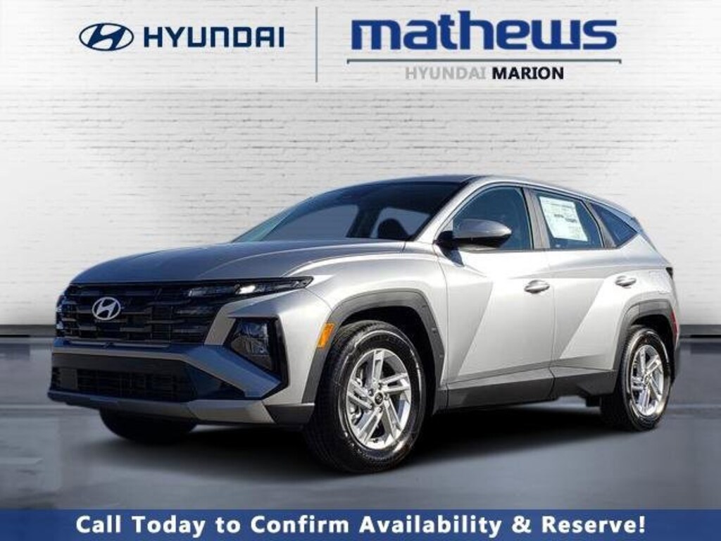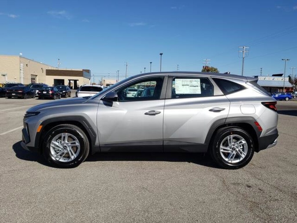 Check out all these great options Option Group 01, 17" x 7.0J Alloy Wheels, 4-Wheel Disc Brakes, 6 Speakers, ABS brakes, Air Conditioning, Alloy wheels, AM/FM radio: SiriusXM, Apple CarPlay & Android Auto, Auto High-beam Headlights, Brake assist, Bumpers: body-color, Cargo Blocks, Cargo Cover, Cargo Net, Cargo Tray, Carpeted Floor Mats, Delay-off headlights, Driver door bin, Driver vanity mirror, Dual front impact airbags, Dual front side impact airbags, Electronic Stability Control, Emergency communication system: Bluelink+, First Aid Kit, Four wheel independent suspension, Front and Rear Mudguards, Front anti-roll bar, Front Bucket Seats, Front Center Armrest, Front reading lights, Fully automatic headlights, Illuminated entry, Low tire pressure warning, Occupant sensing airbag, Outside temperature display, Overhead airbag, Overhead console, Panic alarm, Passenger door bin, Passenger vanity mirror, Power door mirrors, Power steering, Power windows, Radio data system, Radio: AM/FM/HD Audio System, Rear anti-roll bar, Rear reading lights, Rear seat center armrest, Rear side impact airbag, Rear window defroster, Rear window wiper, Remote keyless entry, Roadside Assistance Kit, Security system, Speed control, Split folding rear seat, Spoiler, Stain & Odor Resistant Cloth Seat Trim, Steering wheel mounted audio controls, Tachometer, Telescoping steering wheel, Tilt steering wheel, Traction control, Trip computer, and Variably intermittent wipers. Shimmering Silver 2026 Hyundai Tucson SE FWD 8-Speed Automatic with SHIFTRONIC 2.5L I4 DGI DOHC 16V LEV3-SULEV30 187hp