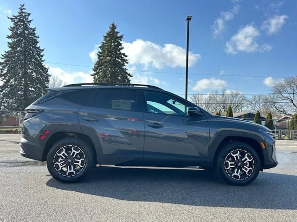 Check out all these great options Option Group 01, 4-Wheel Disc Brakes, 6 Speakers, ABS brakes, Air Conditioning, Alloy wheels, AM/FM radio: SiriusXM, Apple CarPlay & Android Auto, Auto High-beam Headlights, Automatic temperature control, Brake assist, Bumpers: body-color, Cargo Net, Cargo Tray, Carpeted Floor Mats, Delay-off headlights, Driver door bin, Driver vanity mirror, Dual front impact airbags, Dual front side impact airbags, Electronic Stability Control, Emergency communication system: None, First Aid Kit, Four wheel independent suspension, Front anti-roll bar, Front Bucket Seats, Front Center Armrest, Front dual zone A/C, Front reading lights, Fully automatic headlights, H-Tex Seat Trim, Heated door mirrors, Heated Front Bucket Seats, Heated front seats, Illuminated entry, Leather Shift Knob, Leather steering wheel, Low tire pressure warning, Occupant sensing airbag, Outside temperature display, Overhead airbag, Overhead console, Panic alarm, Passenger door bin, Passenger vanity mirror, Power door mirrors, Power driver seat, Power Liftgate, Power steering, Power windows, Radio data system, Radio: AM/FM/HD Audio System, Rear anti-roll bar, Rear reading lights, Rear seat center armrest, Rear side impact airbag, Rear window defroster, Rear window wiper, Remote keyless entry, Security system, Severe Weather Kit, Speed control, Split folding rear seat, Spoiler, Steering wheel mounted audio controls, Tachometer, Telescoping steering wheel, Tilt steering wheel, Traction control, Trip computer, Turn signal indicator mirrors, Variably intermittent wipers, and Wheels: : 18" x 7.5J Xrt-Exclusive Alloy. Ecotronic Gray 2026 Hyundai Tucson XRT AWD 8-Speed Automatic with SHIFTRONIC 2.5L I4 DGI DOHC 16V LEV3-SULEV30 187hp