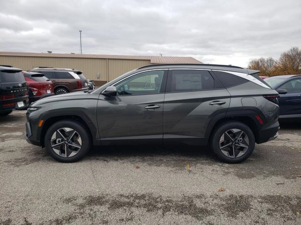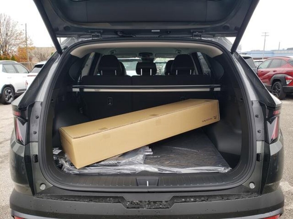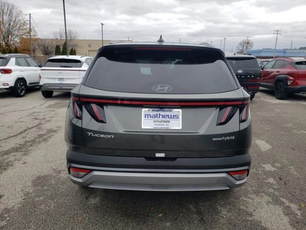 Check out all these great options Option Group 01, 18" x 7.5J Alloy Wheels, 4-Wheel Disc Brakes, 6 Speakers, ABS brakes, Air Conditioning, Alloy wheels, AM/FM radio: SiriusXM, Apple CarPlay & Android Auto, Auto High-beam Headlights, Auto-dimming Rear-View mirror, Automatic temperature control, Brake assist, Bumpers: body-color, Cargo Cover, Cargo Net, Cargo Tray, Carpeted Floor Mats, Delay-off headlights, Driver door bin, Driver vanity mirror, Dual front impact airbags, Dual front side impact airbags, Electronic Stability Control, Emergency communication system: Bluelink+, First Aid Kit, Four wheel independent suspension, Front anti-roll bar, Front Bucket Seats, Front Center Armrest, Front dual zone A/C, Front reading lights, Fully automatic headlights, H-Tex Trimmed Seat Trim, Heated door mirrors, Heated Front Bucket Seats, Heated front seats, Illuminated entry, Leather steering wheel, Low tire pressure warning, Occupant sensing airbag, Outside temperature display, Overhead airbag, Overhead console, Panic alarm, Passenger door bin, Passenger vanity mirror, Power door mirrors, Power driver seat, Power Liftgate, Power steering, Power windows, Radio data system, Radio: AM/FM/HD Audio System, Rear anti-roll bar, Rear reading lights, Rear seat center armrest, Rear side impact airbag, Rear window defroster, Rear window wiper, Remote keyless entry, Roof Rack Cross Rails, Security system, Speed control, Split folding rear seat, Spoiler, Steering wheel mounted audio controls, Tachometer, Telescoping steering wheel, Tilt steering wheel, Traction control, Trip computer, Turn signal indicator mirrors, and Variably intermittent wipers. Amazon Gray 2026 Hyundai Tucson Hybrid SEL Convenience AWD 6-Speed Automatic 1.6L I4 DGI Hybrid Turbocharged DOHC 16V LEV3-SULEV30