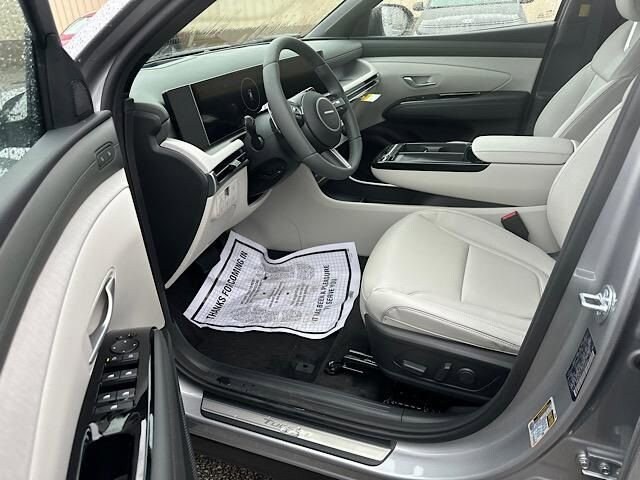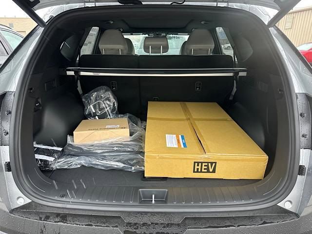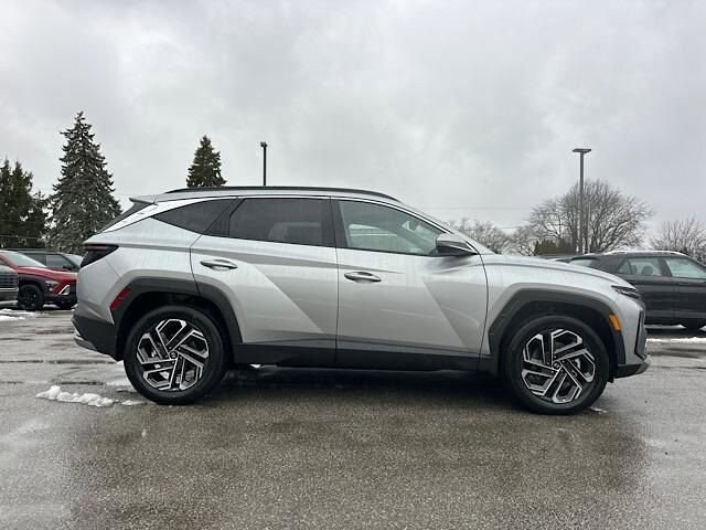 Check out all these great options Option Group 01, 4-Wheel Disc Brakes, 8 Speakers, ABS brakes, Air Conditioning, All Season Fitted Liners, Alloy wheels, AM/FM radio: SiriusXM, Apple CarPlay & Android Auto, Auto High-beam Headlights, Auto-dimming Rear-View mirror, Automatic temperature control, Brake assist, Bumpers: body-color, Cargo Cover, Cargo Net, Carpeted Floor Mats, Delay-off headlights, Driver door bin, Driver vanity mirror, Dual front impact airbags, Dual front side impact airbags, Electronic Stability Control, Emergency communication system: None, First Aid Kit, Four wheel independent suspension, Front and Rear Mudguards, Front anti-roll bar, Front Bucket Seats, Front Center Armrest, Front dual zone A/C, Front reading lights, Fully automatic headlights, Garage door transmitter: HomeLink, Heads-Up Display, Heated and Ventilated Front Bucket Seats, Heated door mirrors, Heated front seats, Heated rear seats, Heated steering wheel, Illuminated entry, Leather steering wheel, Leather-Trimmed Seat Trim, Low tire pressure warning, Memory seat, Navigation System, Occupant sensing airbag, Outside temperature display, Overhead airbag, Overhead console, Panic alarm, Passenger door bin, Passenger vanity mirror, Power door mirrors, Power driver seat, Power Liftgate, Power moonroof, Power passenger seat, Power steering, Power windows, Radio data system, Radio: Bose Premium w/AM/FM/HD Audio System, Rain sensing wipers, Rear anti-roll bar, Rear reading lights, Rear seat center armrest, Rear side impact airbag, Rear window defroster, Rear window wiper, Remote keyless entry, Roadside Assistance Kit, Security system, Speed control, Split folding rear seat, Spoiler, Steering wheel mounted audio controls, Tachometer, Telescoping steering wheel, Tilt steering wheel, Traction control, Trip computer, Turn signal indicator mirrors, Variably intermittent wipers, Ventilated front seats, and Wheels: 19" x 7.5J Alloy. Shimmering Silver 2026 Hyundai Tucson Hybrid Limited AWD 6-Speed Automatic 1.6L I4 DGI Hybrid Turbocharged DOHC 16V LEV3-SULEV30