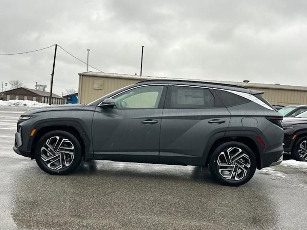 Check out all these great options Option Group 01, 4-Wheel Disc Brakes, 8 Speakers, ABS brakes, Air Conditioning, All Season Fitted Liners, Alloy wheels, AM/FM radio: SiriusXM, Apple CarPlay & Android Auto, Auto High-beam Headlights, Auto-dimming Rear-View mirror, Automatic temperature control, Brake assist, Bumpers: body-color, Cargo Cover, Cargo Net, Cargo Organizer, Cargo Tray, Carpeted Floor Mats, Delay-off headlights, Driver door bin, Driver vanity mirror, Dual front impact airbags, Dual front side impact airbags, Electronic Stability Control, Emergency communication system: None, First Aid Kit, Four wheel independent suspension, Front anti-roll bar, Front Bucket Seats, Front Center Armrest, Front dual zone A/C, Front reading lights, Fully automatic headlights, Garage door transmitter: HomeLink, Heads-Up Display, Heated and Ventilated Front Bucket Seats, Heated door mirrors, Heated front seats, Heated rear seats, Heated steering wheel, Illuminated entry, Leather Seat Trim, Leather Shift Knob, Leather steering wheel, Low tire pressure warning, Memory seat, Mudguards, Navigation System, Occupant sensing airbag, Outside temperature display, Overhead airbag, Overhead console, Panic alarm, Passenger door bin, Passenger vanity mirror, Power door mirrors, Power driver seat, Power Liftgate, Power moonroof, Power passenger seat, Power steering, Power windows, Radio data system, Radio: Bose Premium w/AM/FM/HD Audio System, Rain sensing wipers, Rear anti-roll bar, Rear reading lights, Rear seat center armrest, Rear side impact airbag, Rear window defroster, Rear window wiper, Remote keyless entry, Roadside Assistance Kit, Security system, Speed control, Split folding rear seat, Spoiler, Steering wheel mounted audio controls, Tachometer, Telescoping steering wheel, Tilt steering wheel, Traction control, Trip computer, Turn signal indicator mirrors, Variably intermittent wipers, Ventilated front seats, and Wheels: 19" x 7.5J Alloy. Ecotronic Gray Matte 2026 Hyundai Tucson Limited FWD 8-Speed Automatic with SHIFTRONIC 2.5L I4 DGI DOHC 16V LEV3-SULEV30 187hp