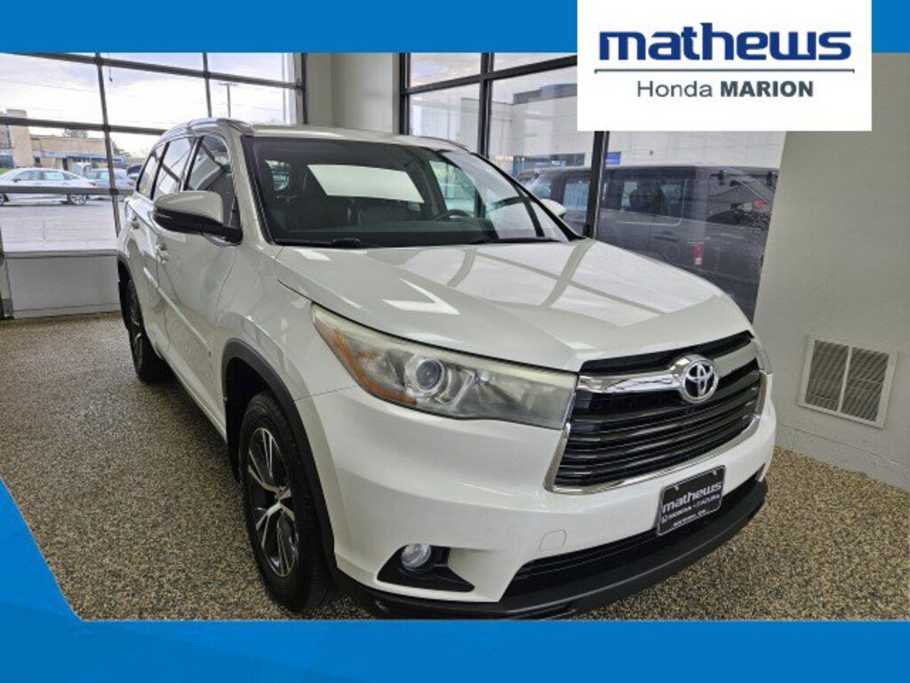 At Mathews Honda in Marion , we go the extra mile for each and every one of our central Ohio guests. We take pride in our service and the long-lasting relationships that we've developed. Our team is made up of financial experts, Honda certified auto repair mechanics and kind, caring salespeople that can relate to you and your needs. Our sales staff is here to help you find and finance or lease that new or used car you have been searching for in Marion . Stop by our Honda showroom at our convenient location in Marion, Ohio. We look forward to giving you the top-notch customer care that you deserve whether you are in Marion, Columbus, Findlay, Mansfield, Delaware, Upper Sandusky, Mt. Gilead, Cardington, Kenton or Marysville. Treat yourself to an SUV that surrounds you with all the comfort and conveniences of a luxury sedan. Enjoy the grip and control of AWD performance in this nicely equipped Toyota Highlander XLE. Based on the superb condition of this vehicle, along with the options and color, this Toyota Highlander XLE is sure to sell fast. More information about the 2016 Toyota Highlander: The Toyota Highlander is a mid-sized near-luxury crossover competing in a crowded segment where just about every major auto manufacturer has a hat in the ring. What makes the Highlander successful is its blend of technology, convenience and Toyota durability at the right price. With plenty of standard features, plus a bevy of options, all wrapped in an attractive package, the Highlander stands out in a crowded field. This model sets itself apart with Roomy, good ground clearance, stylish and technology-filled interior, sleek exterior styling, available hybrid power and all-wheel drive